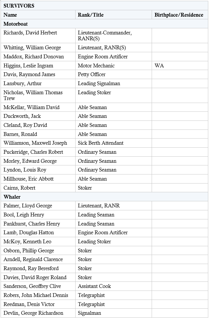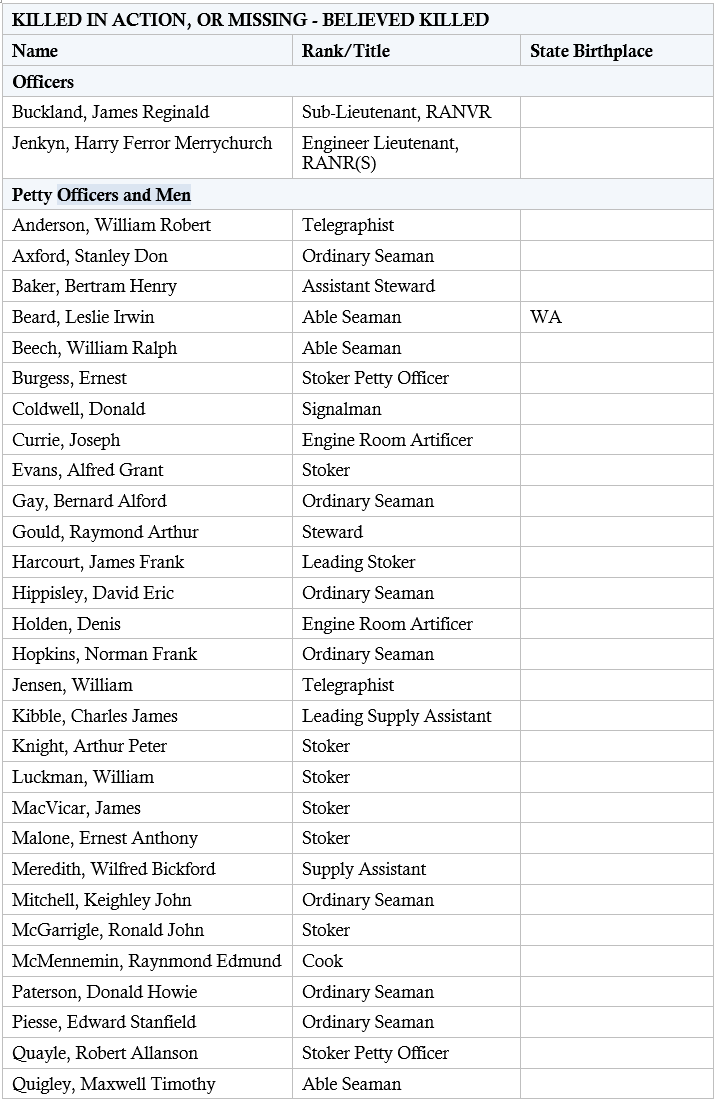 List of HMAS Armidale (I) Personnel