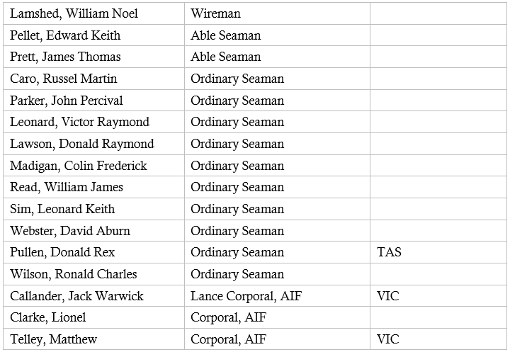 The Association is in the process of establishing the State Birthplace for each person ,who served on HMAS Armidale and doing so the Association seeks assistance/information from relatives and friends of men ,who were on the Armidale on December 1st 1942 so this project can be completed. Once this project is completed a following project will be to establish which City, Town, or Suburb these men came from to provide not only each State but also each municipality with a connection to these brave men.
